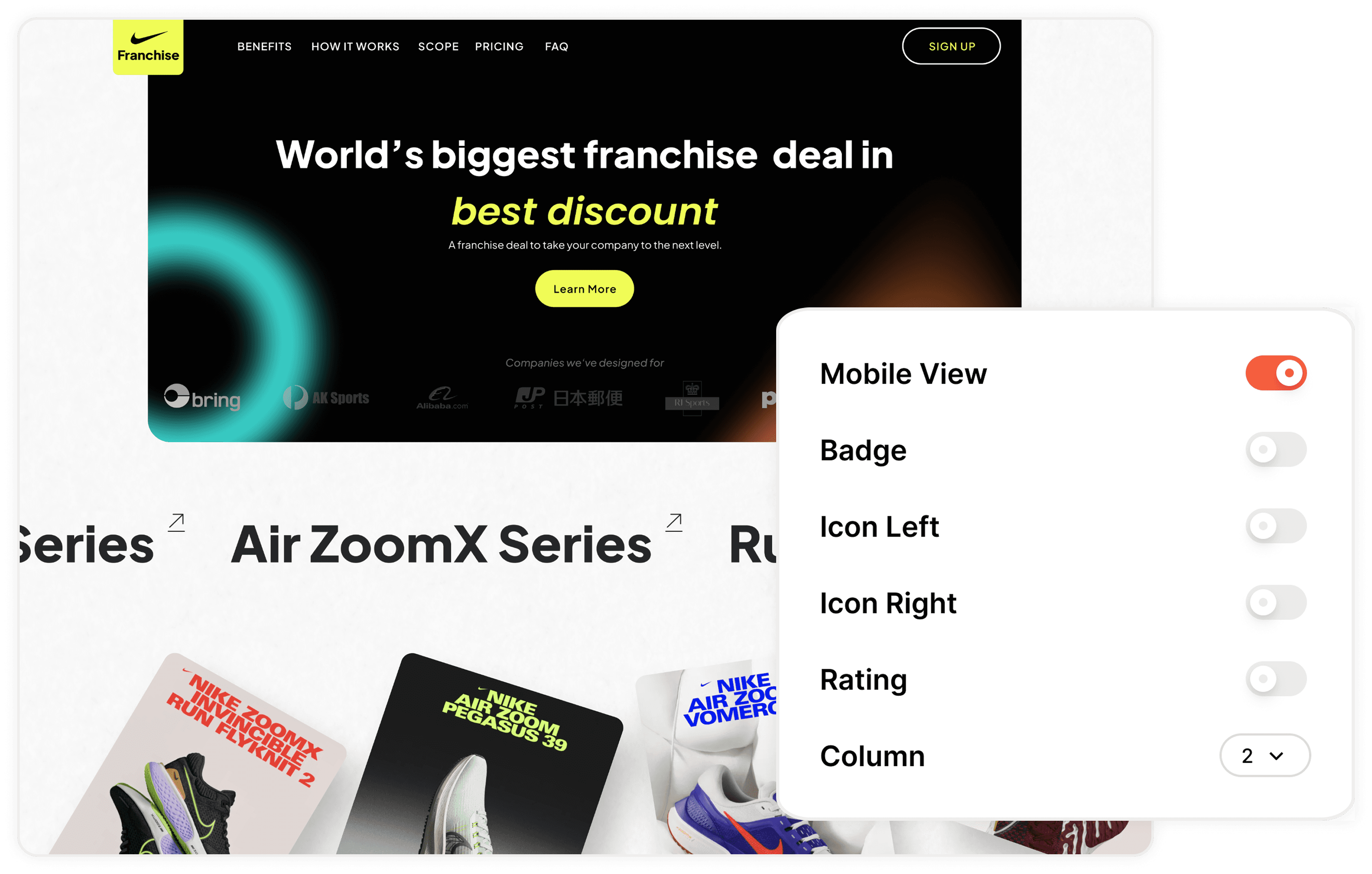 Add custom options like advanced filters, dynamic popups, and unique product pages.